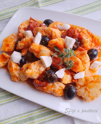 A fine cottura aggiungere le olive, lasciare insaporire, aggiustare di sale, se occore e prima di spengere il fuoco cospargere con la mozzarella tagliata a dadini.